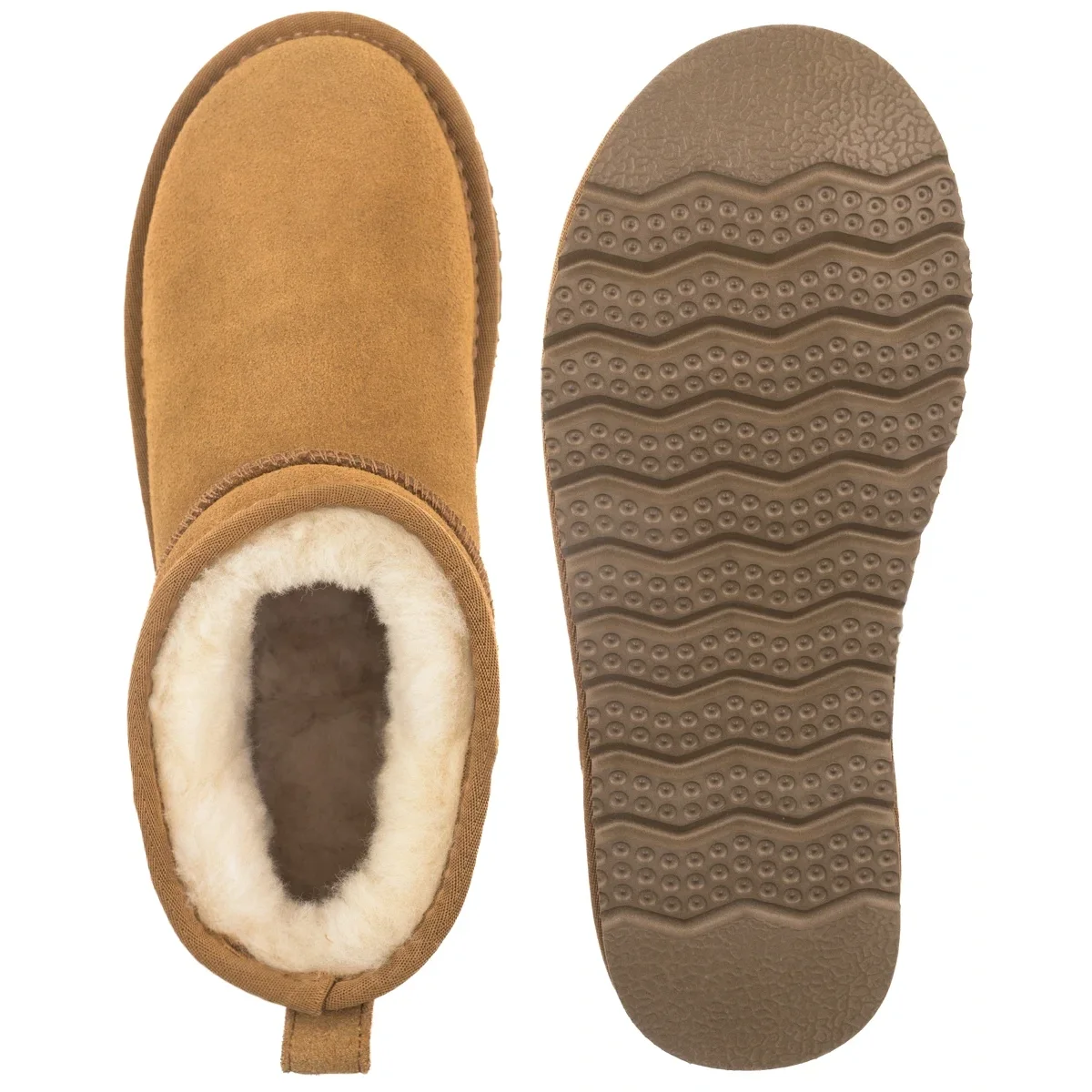 Wnętrze w całości wyściełane jest naturalną owczą wełną, która skutecznie izoluje od chłodu i zapewnia stopom przyjemne ciepło.