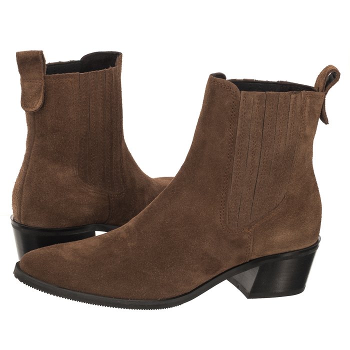 Cholewka buta za kostkę została wykonana ze skóry welurowej.