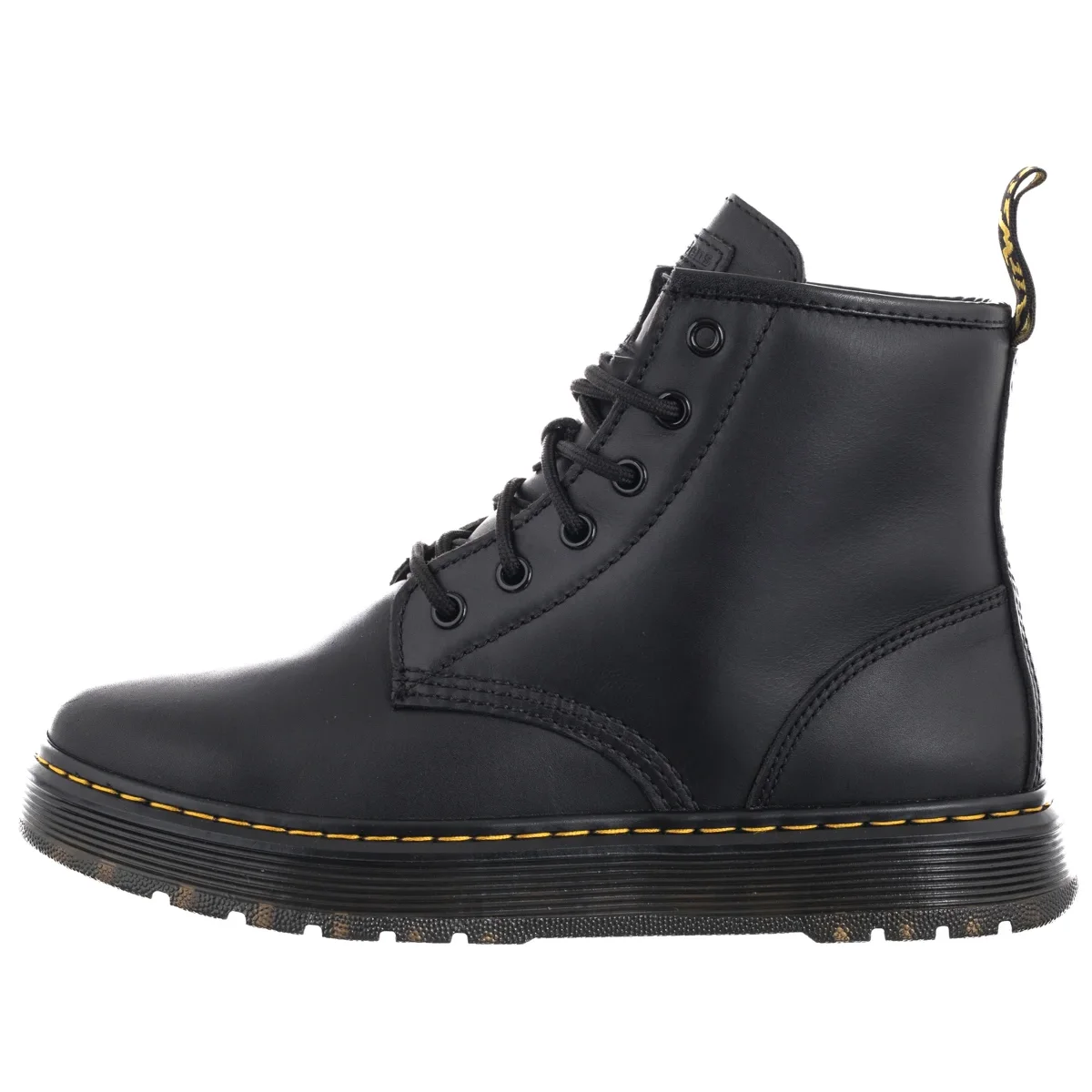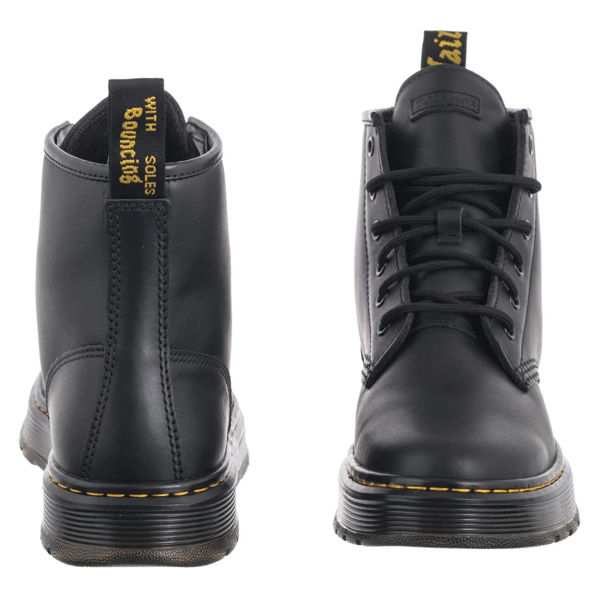 Charakterystyczna pętelka na pięcie i żółte przeszycia wokół podeszwy dodają butom rozpoznawalnego designu Dr. Martens.