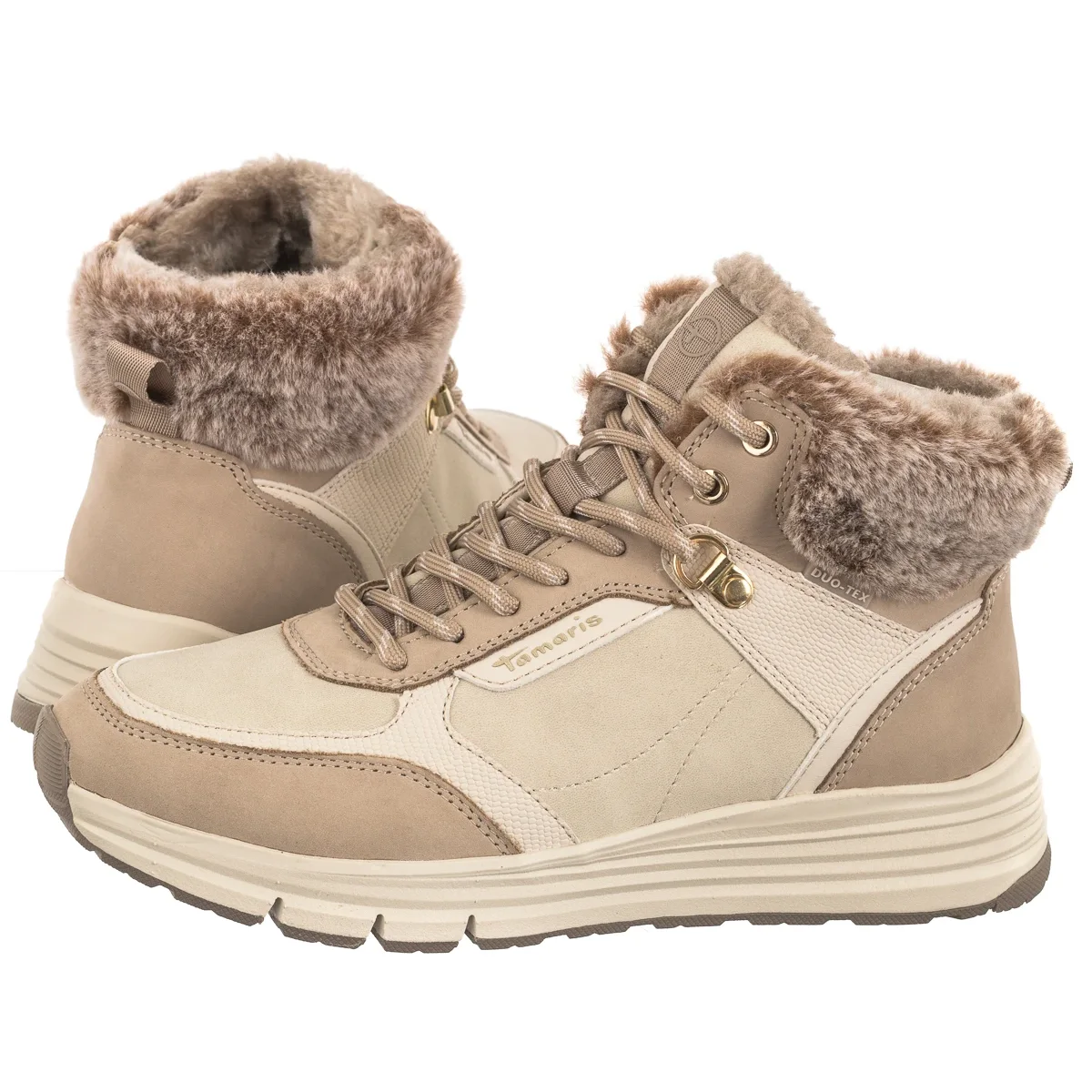 Wnętrze buta ocieplone miękkim futerkiem, zadba o ciepło stóp w chłodniejsze dni.