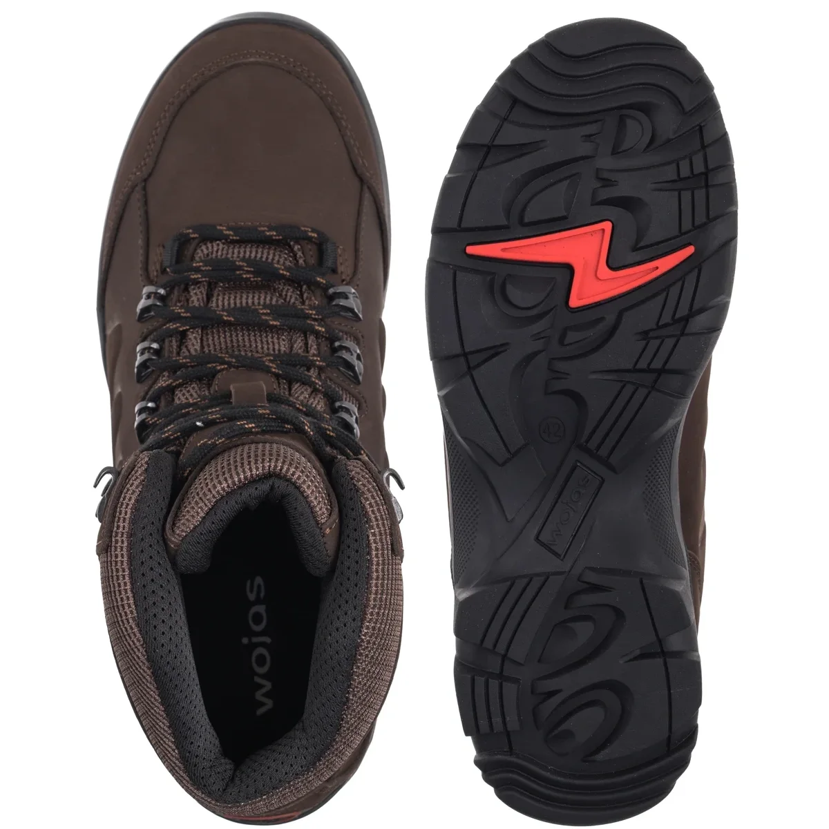 Męskie buty trekkingowe Wojas wykonane z połączenia nubuku i wytrzymałego materiału tekstylnego, gwarantują trwałość i wygodę w każdych warunkach terenowych.