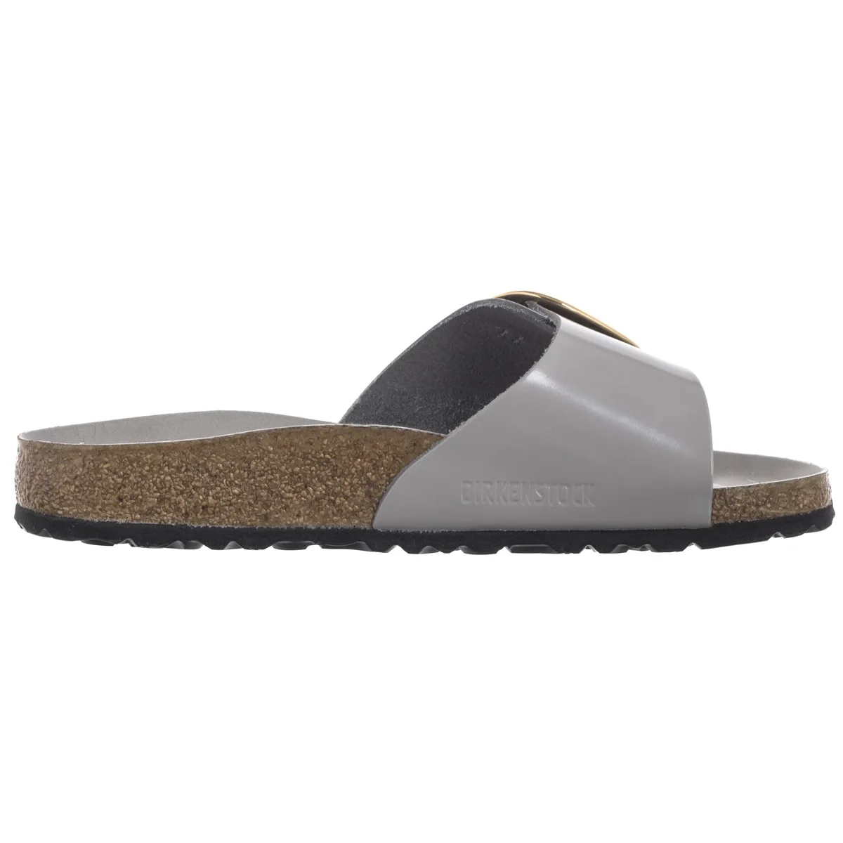 Klasyczne klapki Birkenstock Madrid Big Buckle High-Shine w nowoczesnym stylu, idealne do codziennych stylizacji na lato.
