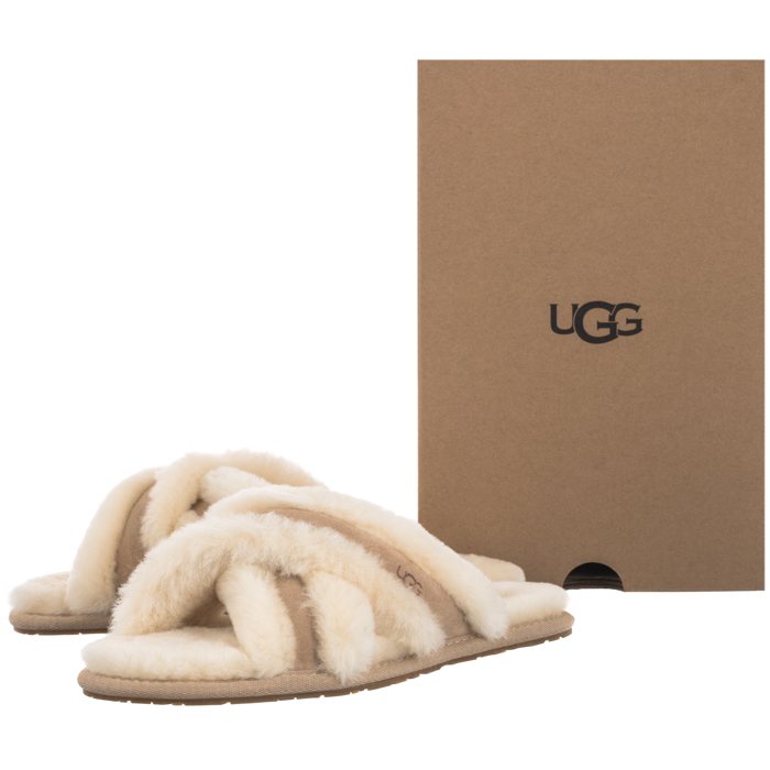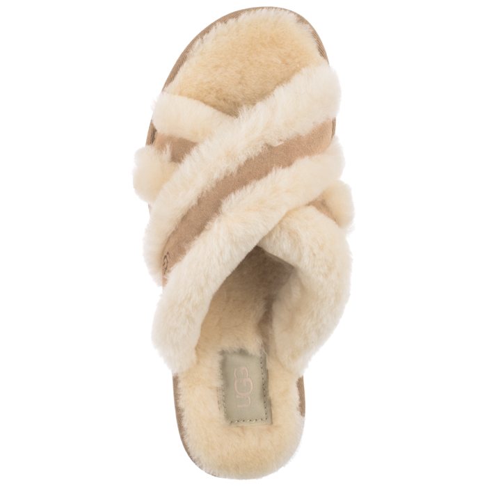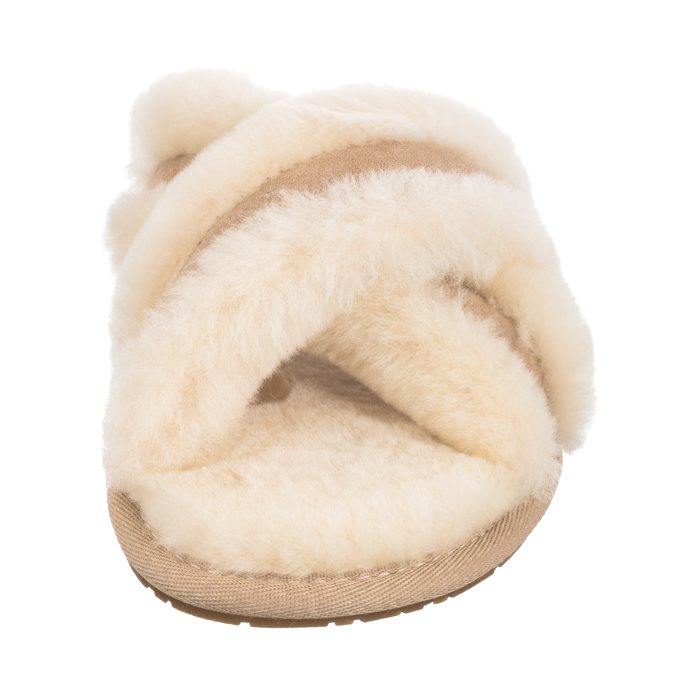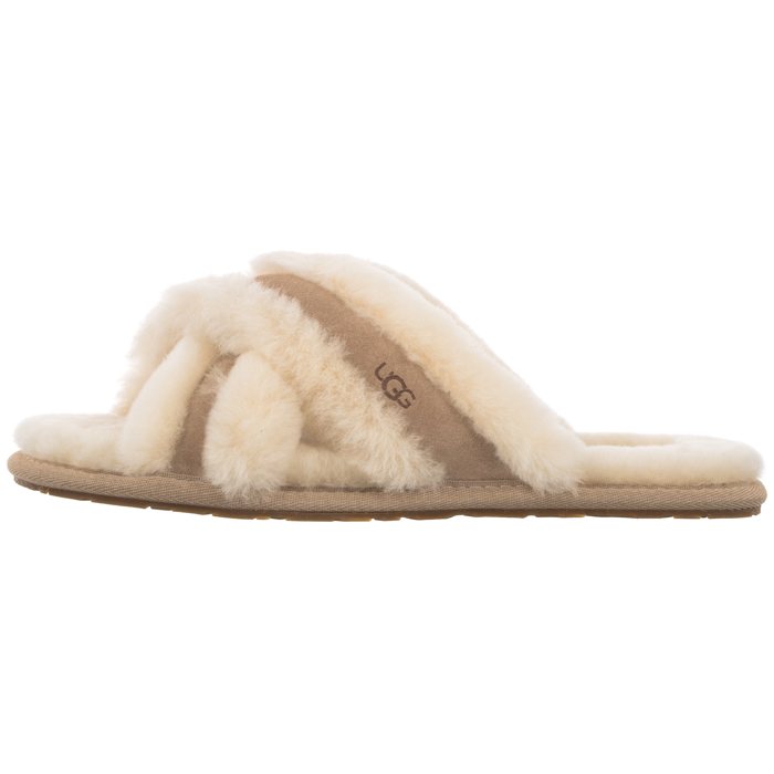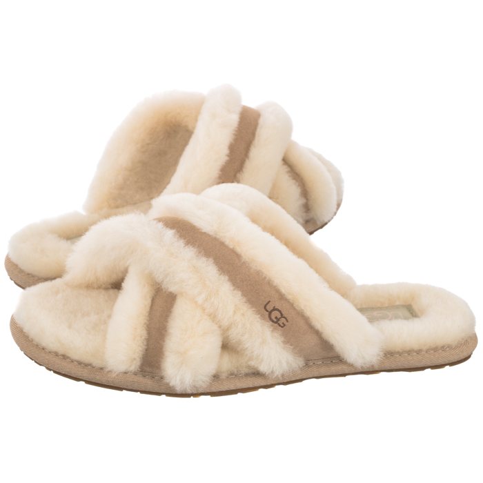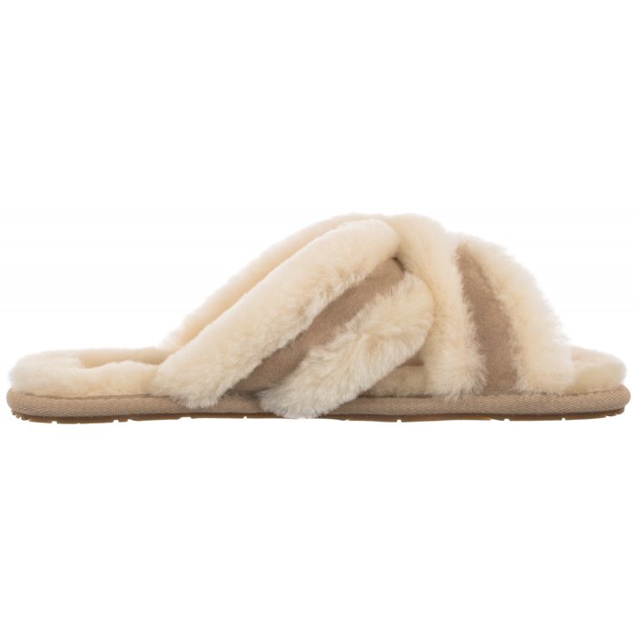 Cholewka to dwa krzyżujące się pasy owczej wełny, ozdobione zamszowymi wstawkami.