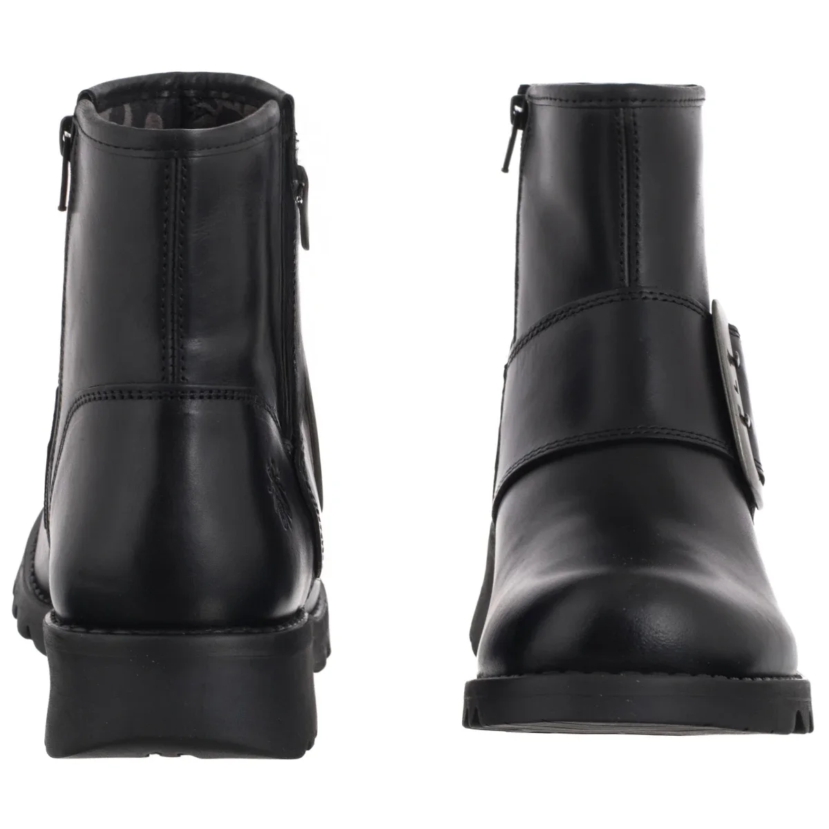 • Obuwie wyróżnia się szerokim paskiem z dużą, metalową klamrą z tłoczonym logo marki, nadając butom oryginalnego, rockowego wyrazu.