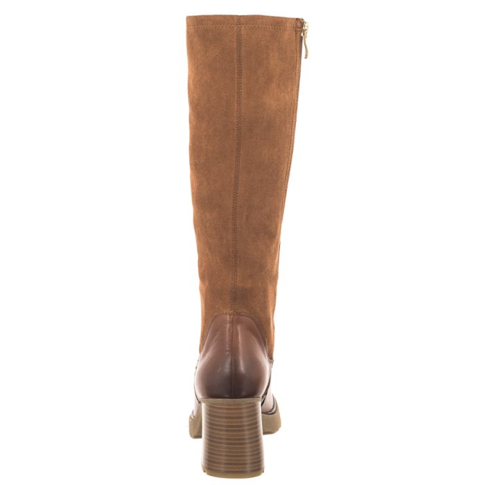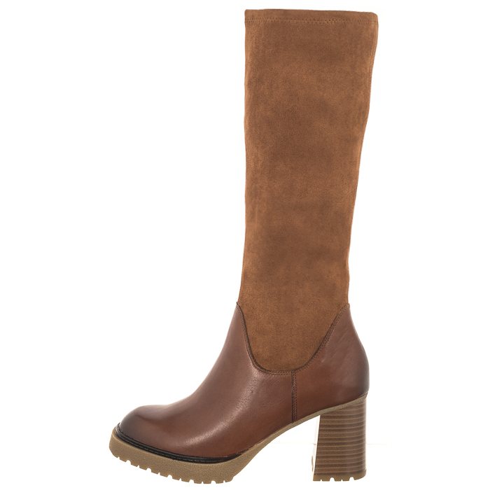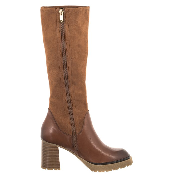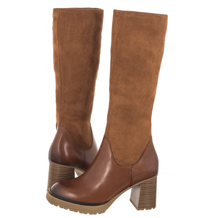 Elastyczna cholewka do kolana wykonana z naturalnej skóry licowej połączonej ze stretchem pozwala na idealne dopasowanie obuwia do nogi.