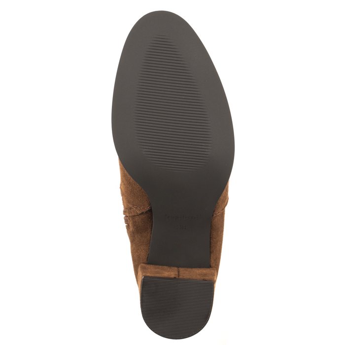 Podeszwa z materiału syntetycznego została osadzona na niskim i stabilnym obcasie.