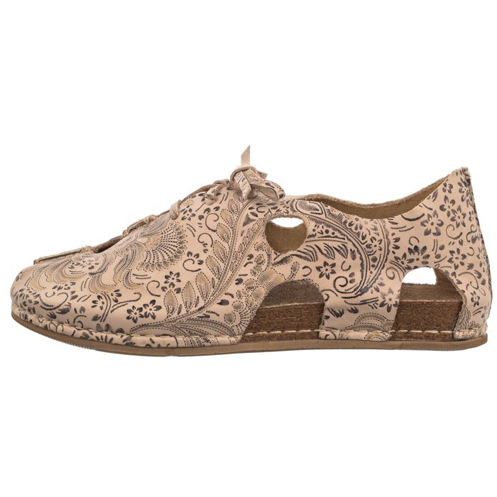 Finezyjnie wycięta cholewka została uszyta z naturalnej skóry.
