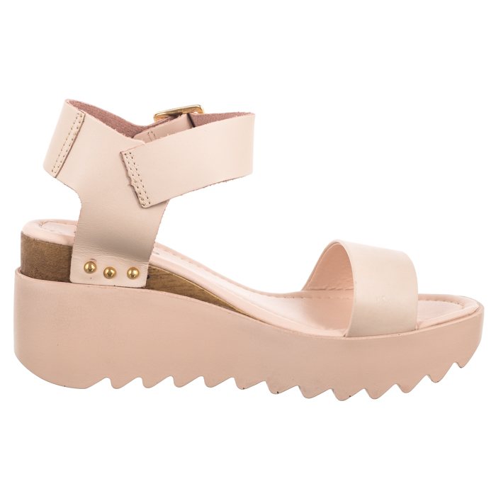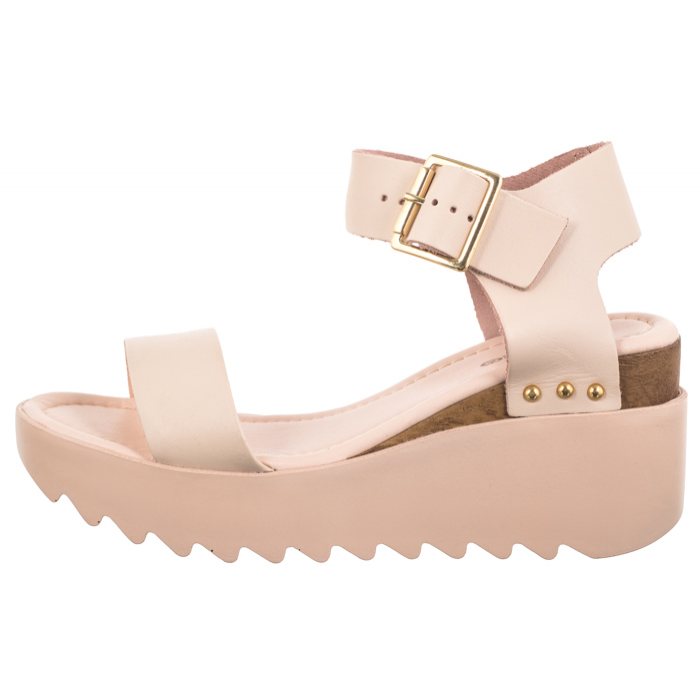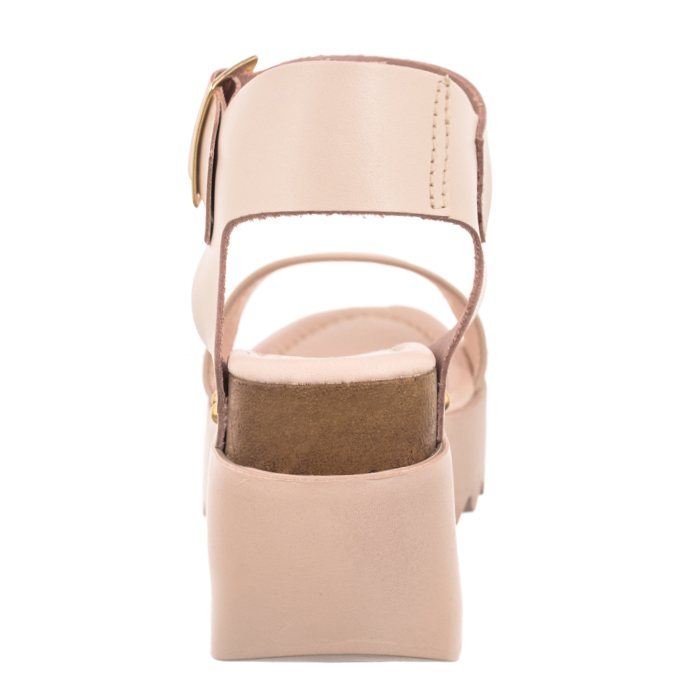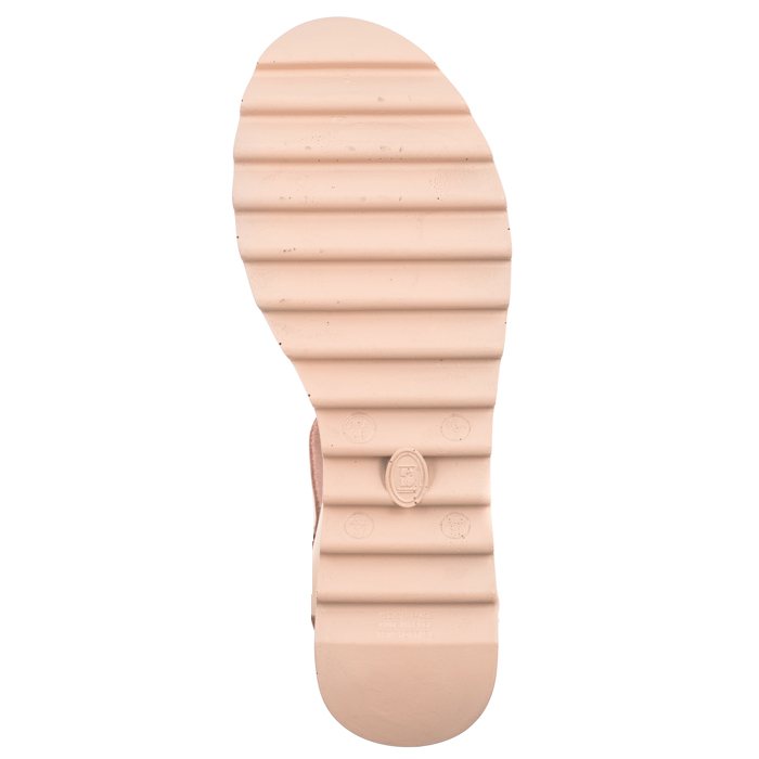 • Gruba podeszwa z tworzywa sztucznego została osadzona na koturnie, co doda kilka centymetrów wzrostu i lekko wysmukli sylwetkę.