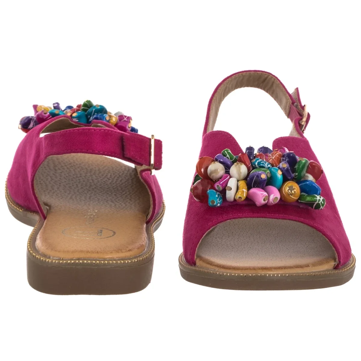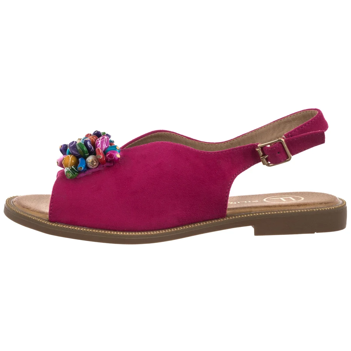 • Zapięcie na regulowany pasek z klamrą pozwala idealnie dopasować sandały do kształtu stopy.