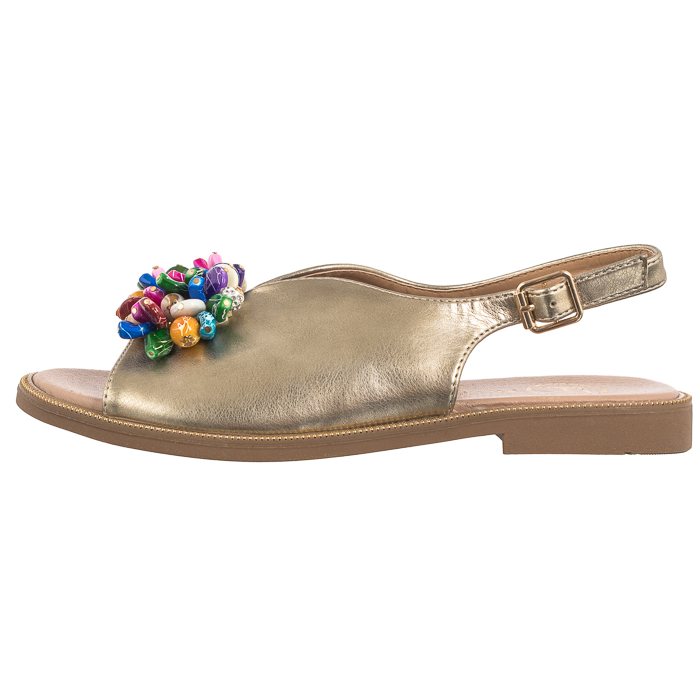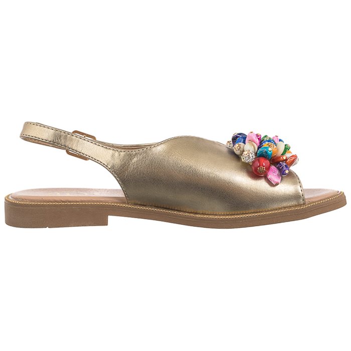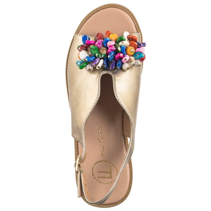 Ozdoba w postaci kolorowych kamyków z przodu cholewki dodaje butom uroku.