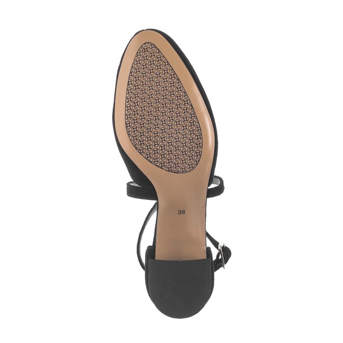 Gruby obcas średniej wysokości zapewnia wygodę.