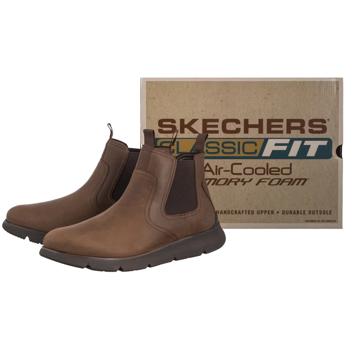 Męskie sztyblety Skechers Augustino Paulo to połączenie elegancji i wygody w codziennym wydaniu, idealne dla mężczyzn ceniących klasyczny styl i nowoczesne rozwiązania.