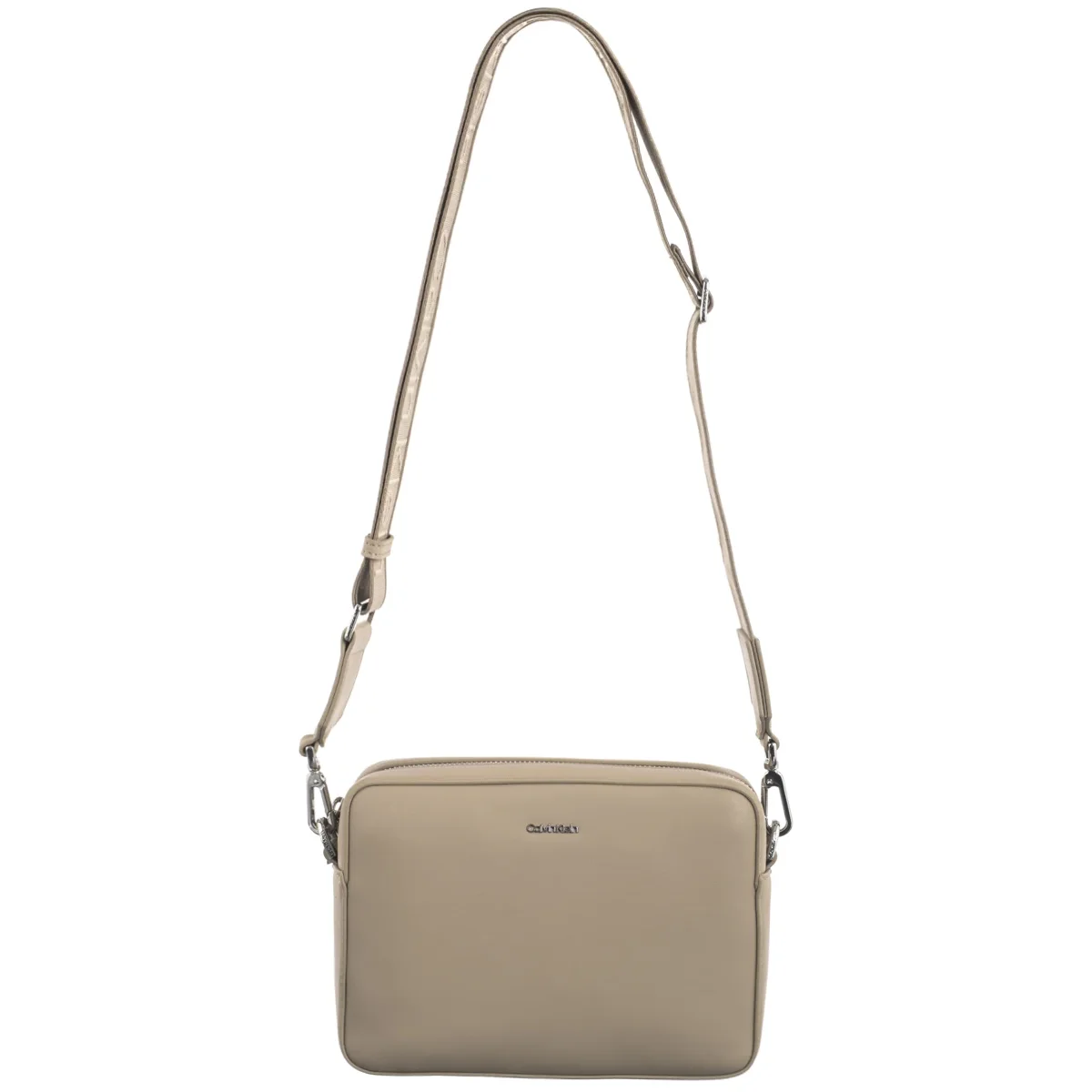 Regulowany pasek na ramię z logo marki ma maksymalną długość ok. 95 cm, więc łatwo dopasujesz go do swojego stylu.