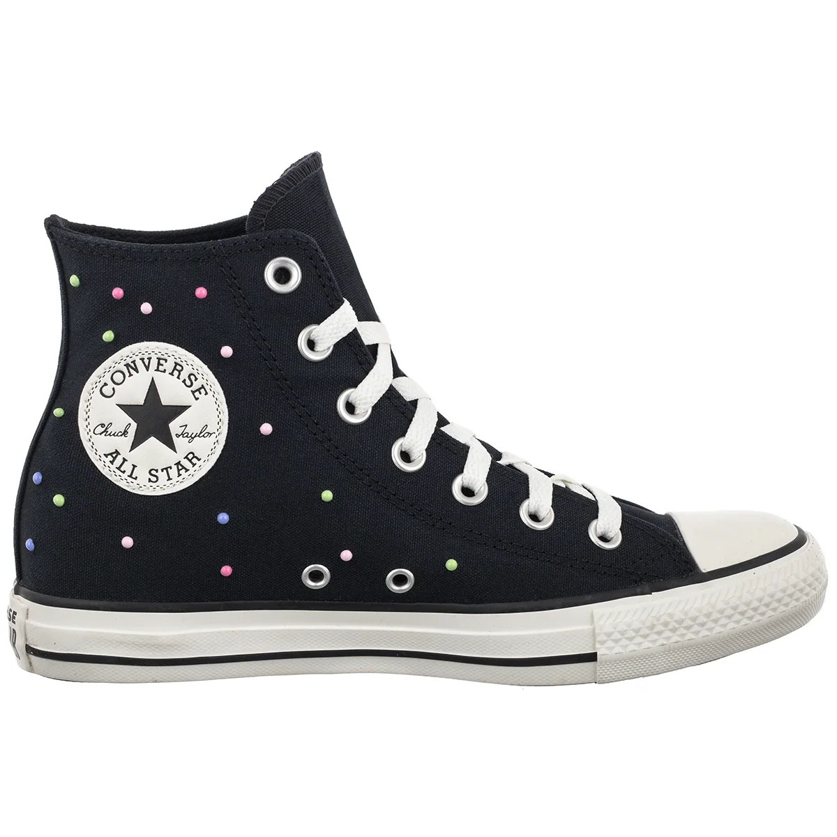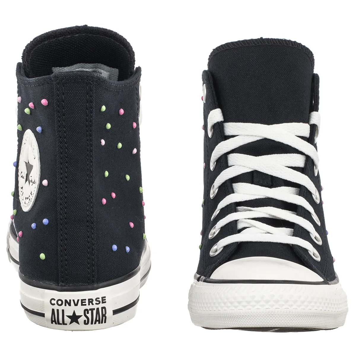 Kolorowe, dekoracyjne aplikacje w formie drobnych kropek rozmieszczone na cholewce nadają trampkom oryginalny, młodzieżowy charakter i wyróżniają je na tle klasycznych wersji.