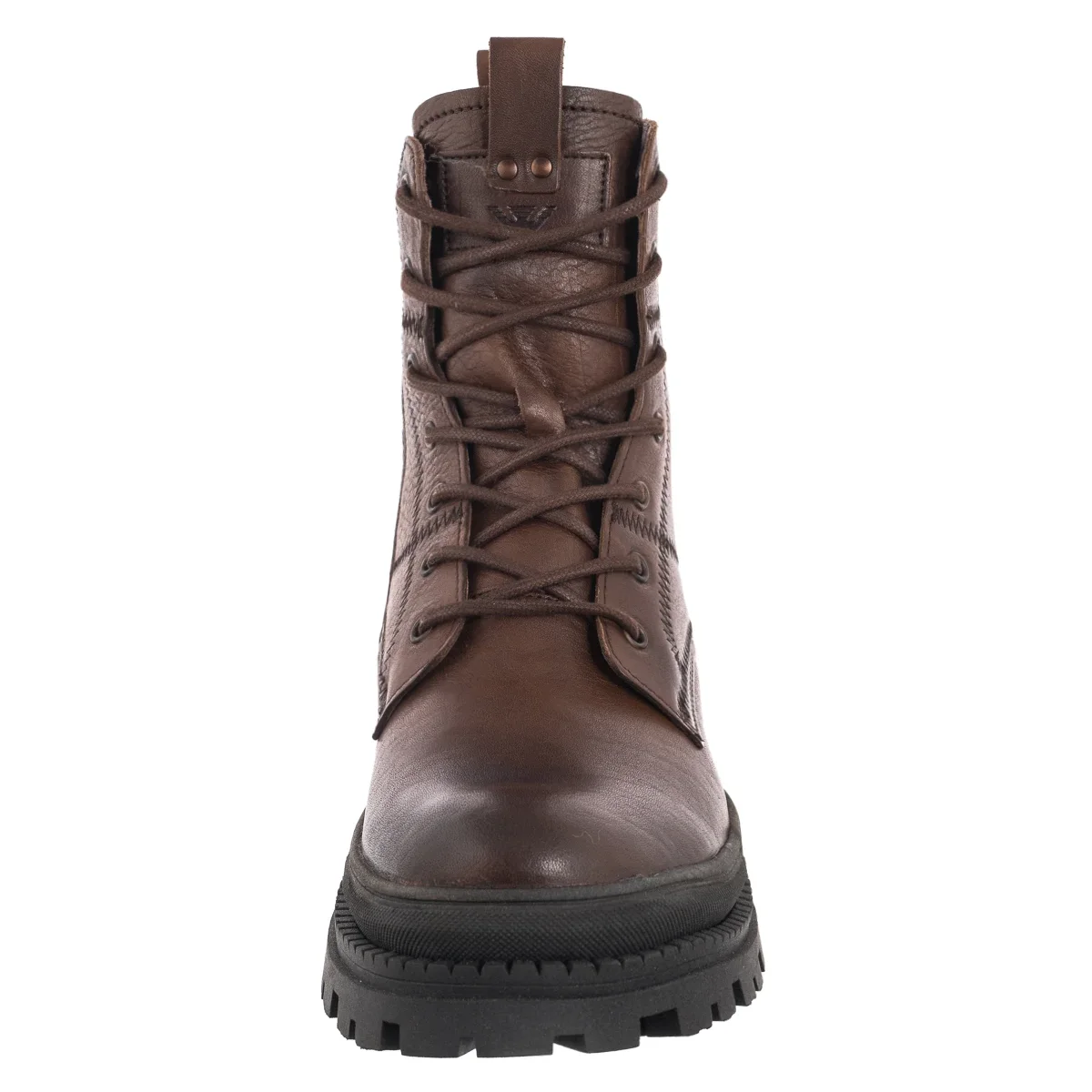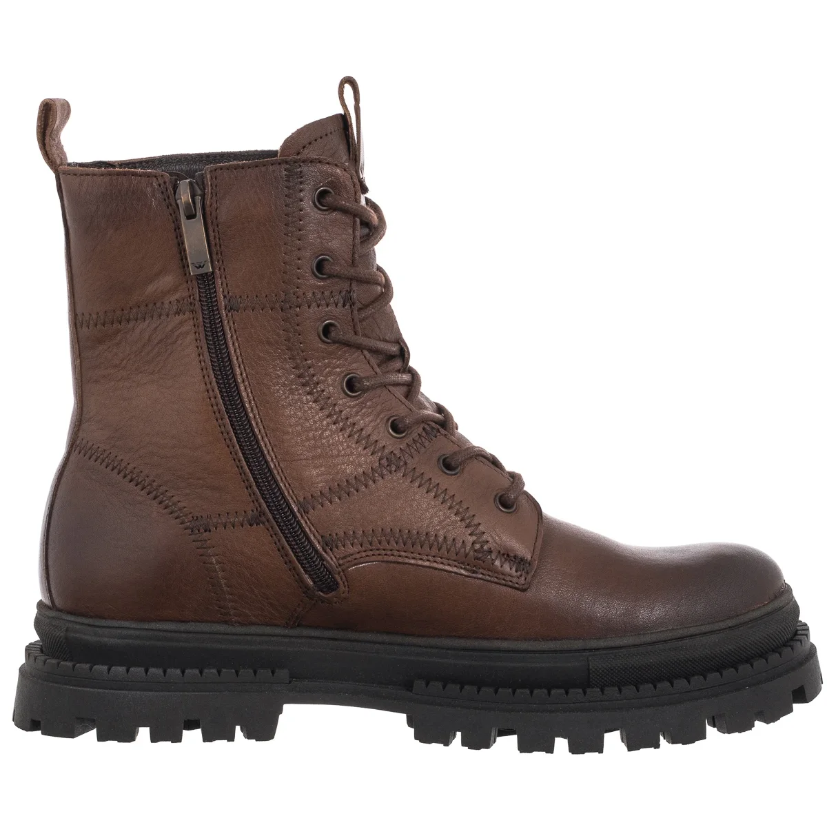 Cholewka buta za kostkę wykonana z naturalnej skóry licowej, chroni przed chłodem.